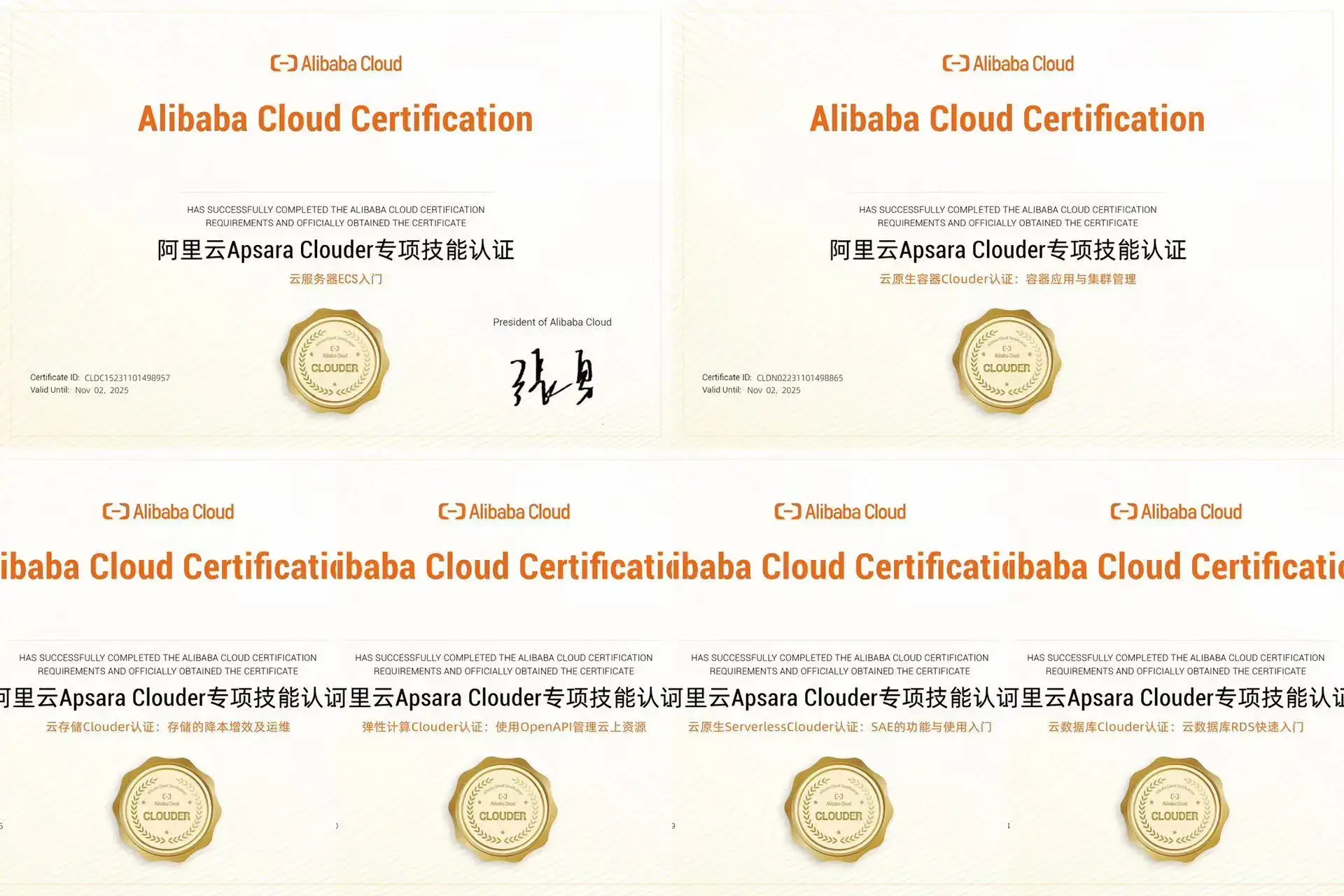 9份 阿里云Apsara Clouder认证证书